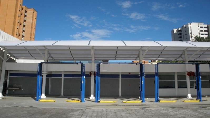 Suministro e Instalación de techo en policarbonato en concesionario de Cordero Agreda en Barquisimeto. Suministro e Instalación de Techo P.C. Área de Lavado de Vehículos y Estacionamiento en Cordero Agreda en Barquisimeto.